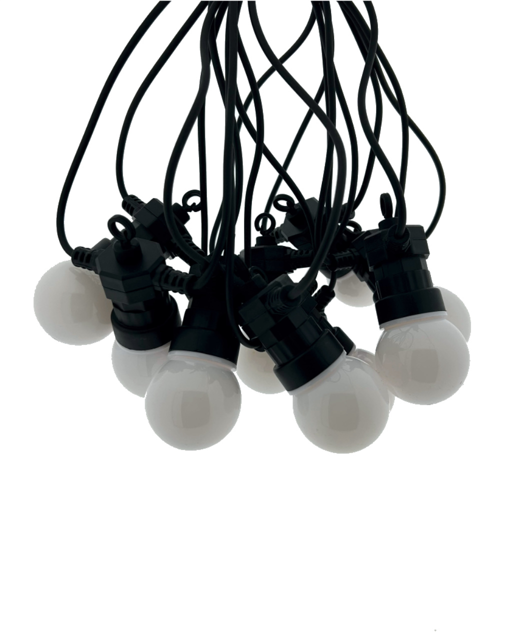 Vytvořte si příjemnou atmosféru na zahradě, terase nebo balkóně s dekorativním LED osvětlením TR-611JS. Tento světelný řetěz obsahuje 10 stylových žárovek, z nichž každá ukrývá 5 LED diod teplé bílé barvy (2700K) – celkem tedy 50 LED na celkové délce 8 metrů. Robustní plastové provedení s krytím IP44 zajišťuje odolnost vůči povětrnostním vlivům, a je tak ideální pro venkovní použití. Světelný řetěz je napájen ze sítě (220–240V) a má bezpečný výstup 24V DC / 3,6W. Díky 3,5 metrovému přívodnímu kabelu je instalace snadná a flexibilní.