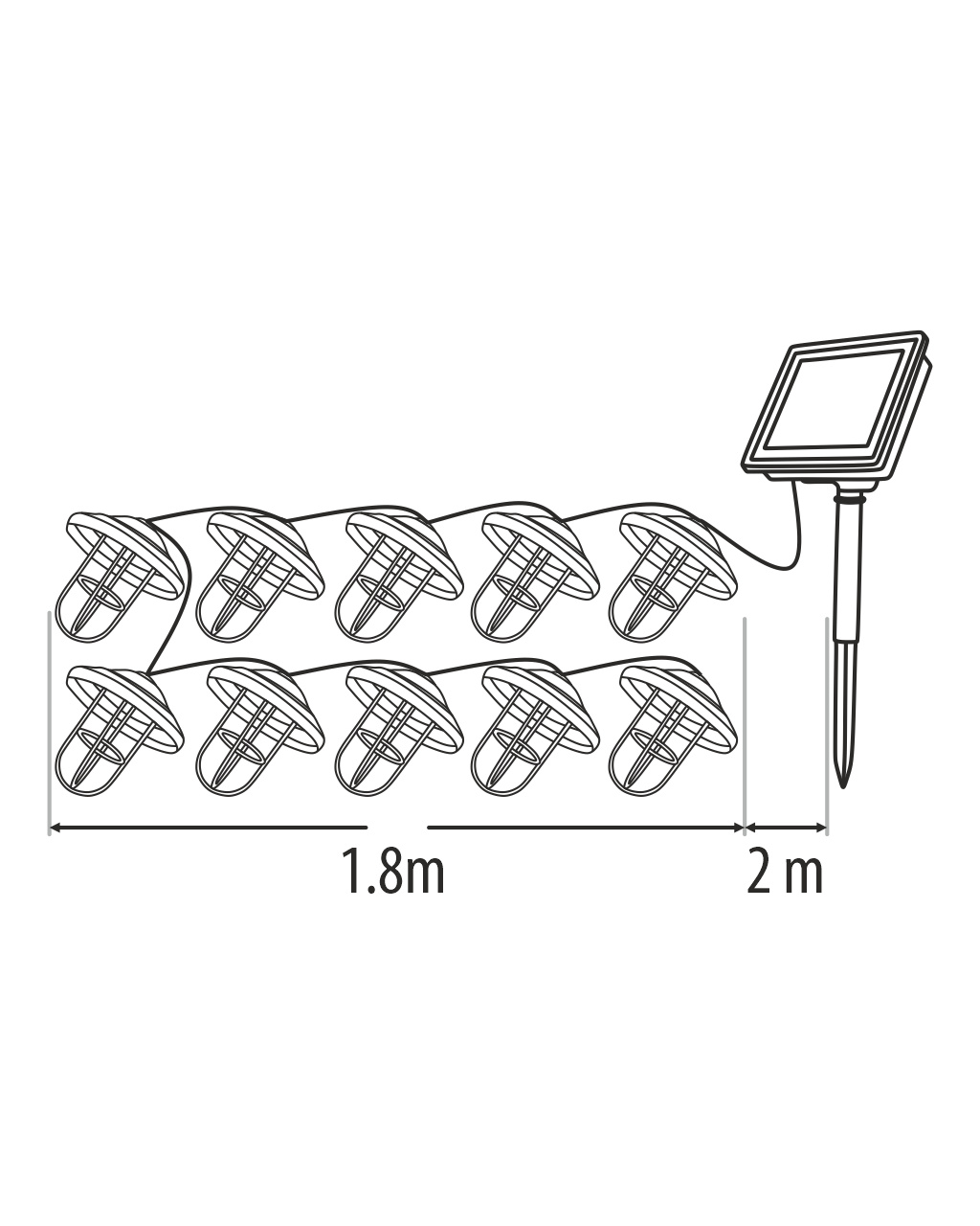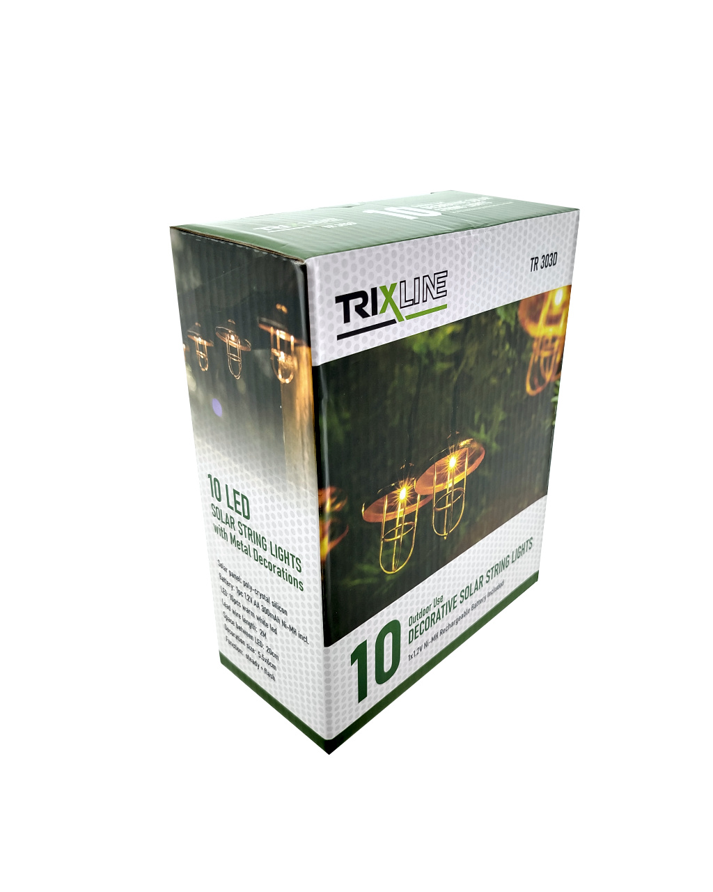 Stylové a úsporné řešení pro osvětlení vaší zahrady, terasy nebo balkónu. LED solární světlo TR-303D se skládá z deseti teplých bílých LED diod rozmístěných na kabelu o délce 3,8 metru. Díky solárnímu napájení a možnosti volby režimů svícení je ideální pro venkovní použití bez nutnosti připojení k elektrické síti.