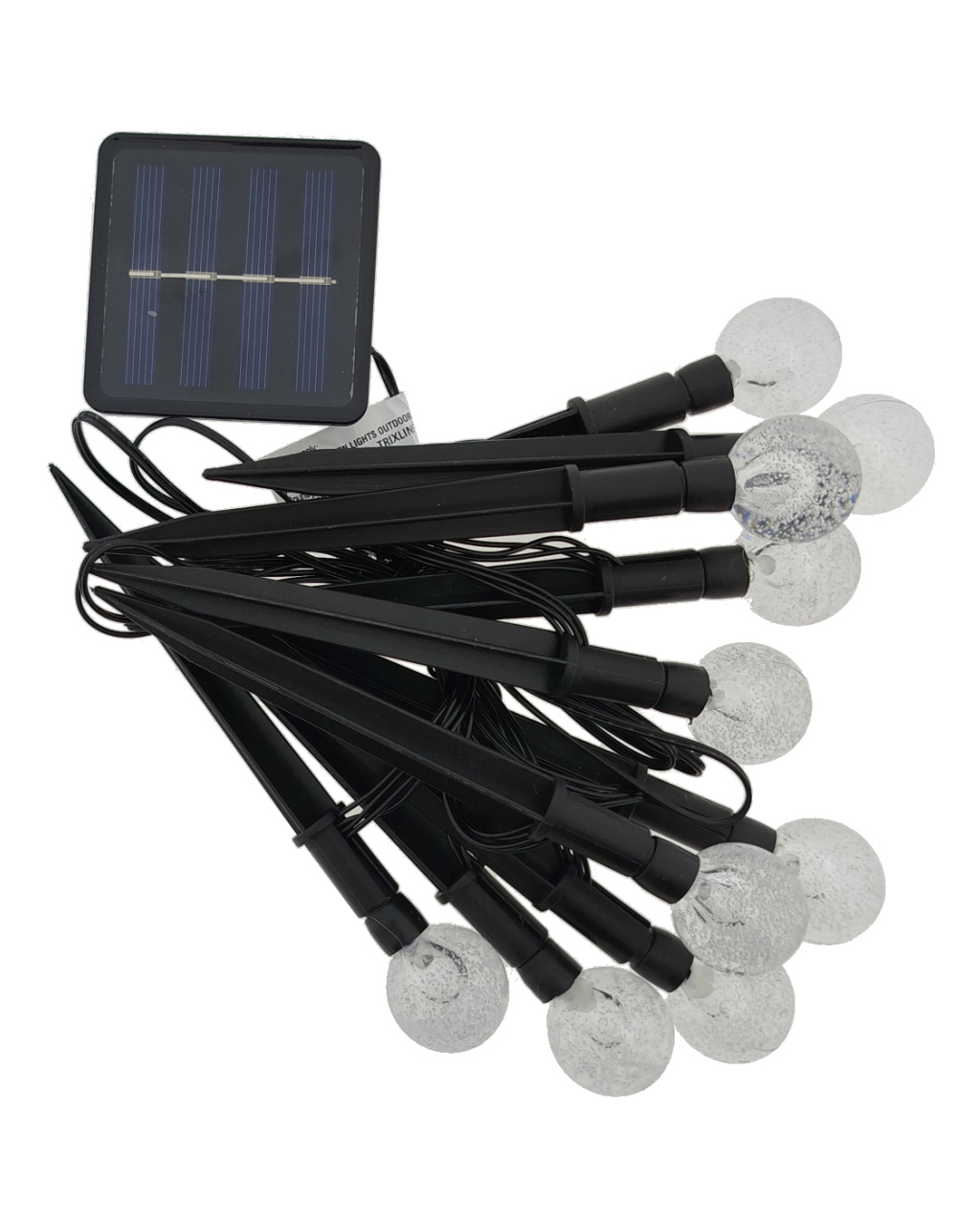 Stylové a úsporné řešení pro osvětlení vaší zahrady, terasy nebo balkónu. LED solární světlo TR-333D se skládá z deseti jednotlivých RGB LED diodových zápichů rozmístěných na kabelu o délce 3,8 metru. Díky solárnímu napájení a možnosti volby režimů svícení je ideální pro venkovní použití bez nutnosti připojení k elektrické síti.