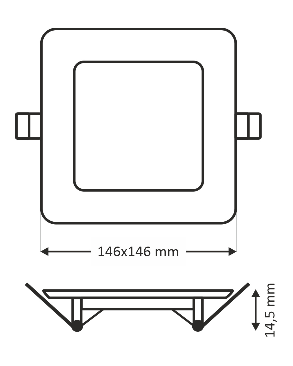 - Vnější rozměr světla: 146x146x14,5mm