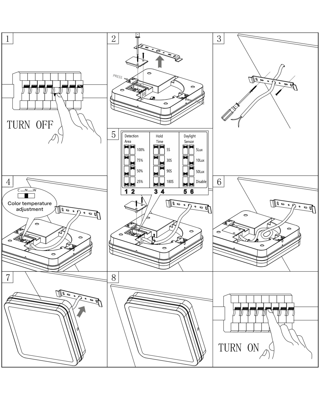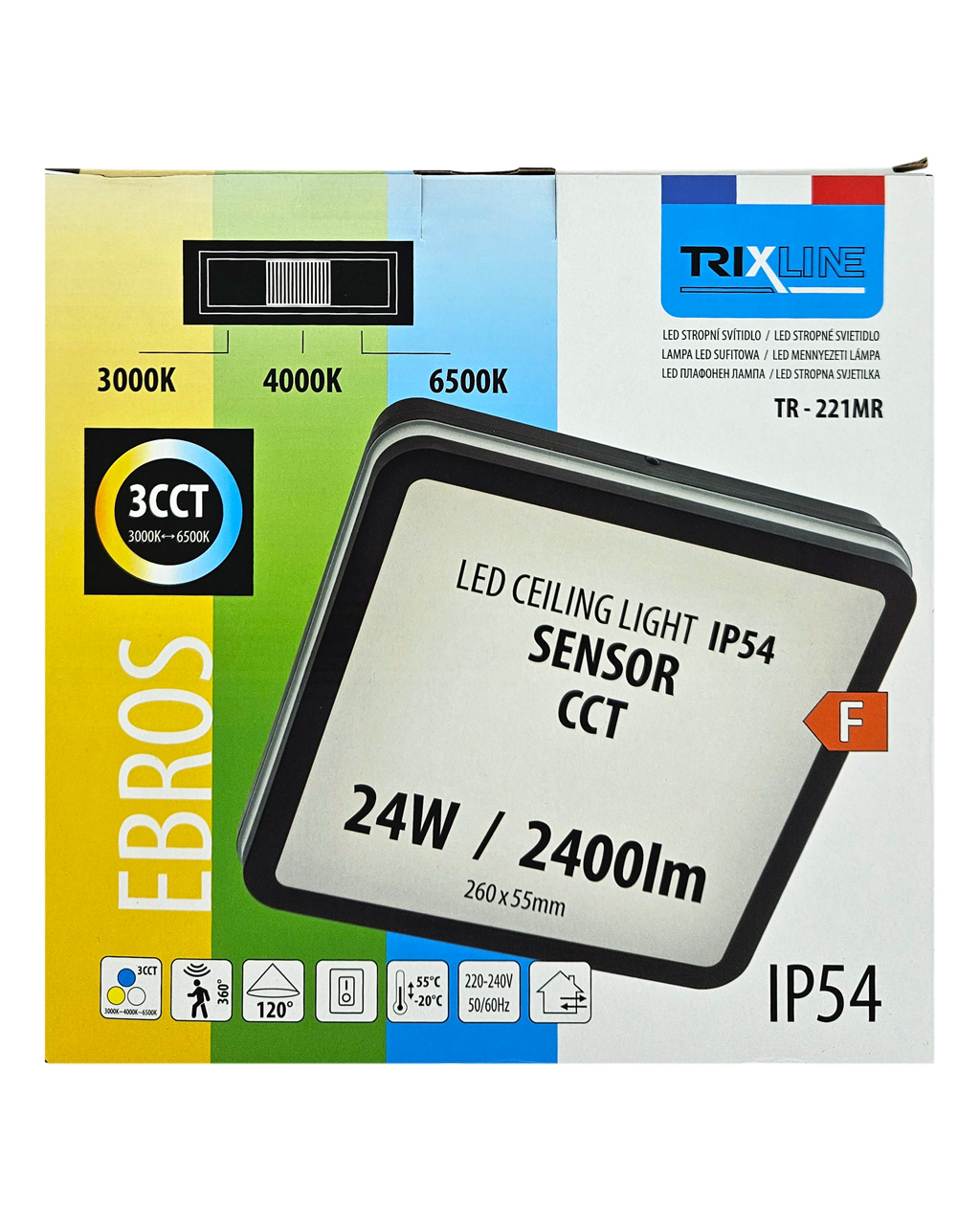 Moderní a výkonné LED CCT stropní svítidlo TR-203MS Trixline - s pohybovým senzorem poskytuje kvalitní a rovnoměrné osvětlení o síle 2050 lumenů. Nastavitelné CCT umožňuje volbu teplé, neutrální nebo studené bílé barvy světla (3000K/4000K/6500K) pro optimální přizpůsobení atmosféry prostoru. Příjemné a efektivní osvětlení, které splní vaše estetické i praktické požadavky. Teplota světla se nastavuje pod krytem na zadní straně pomocí posuvníku. Svítidlo je vybaveno pohybovým senzorem, který automaticky rozsvítí světlo při detekci pohybu. Svítidlo lze instalovat na různých místech díky jeho univerzálním vlastnostem a krytí IP54, které zajišťuje ochranu proti prachu a stříkající vodě.