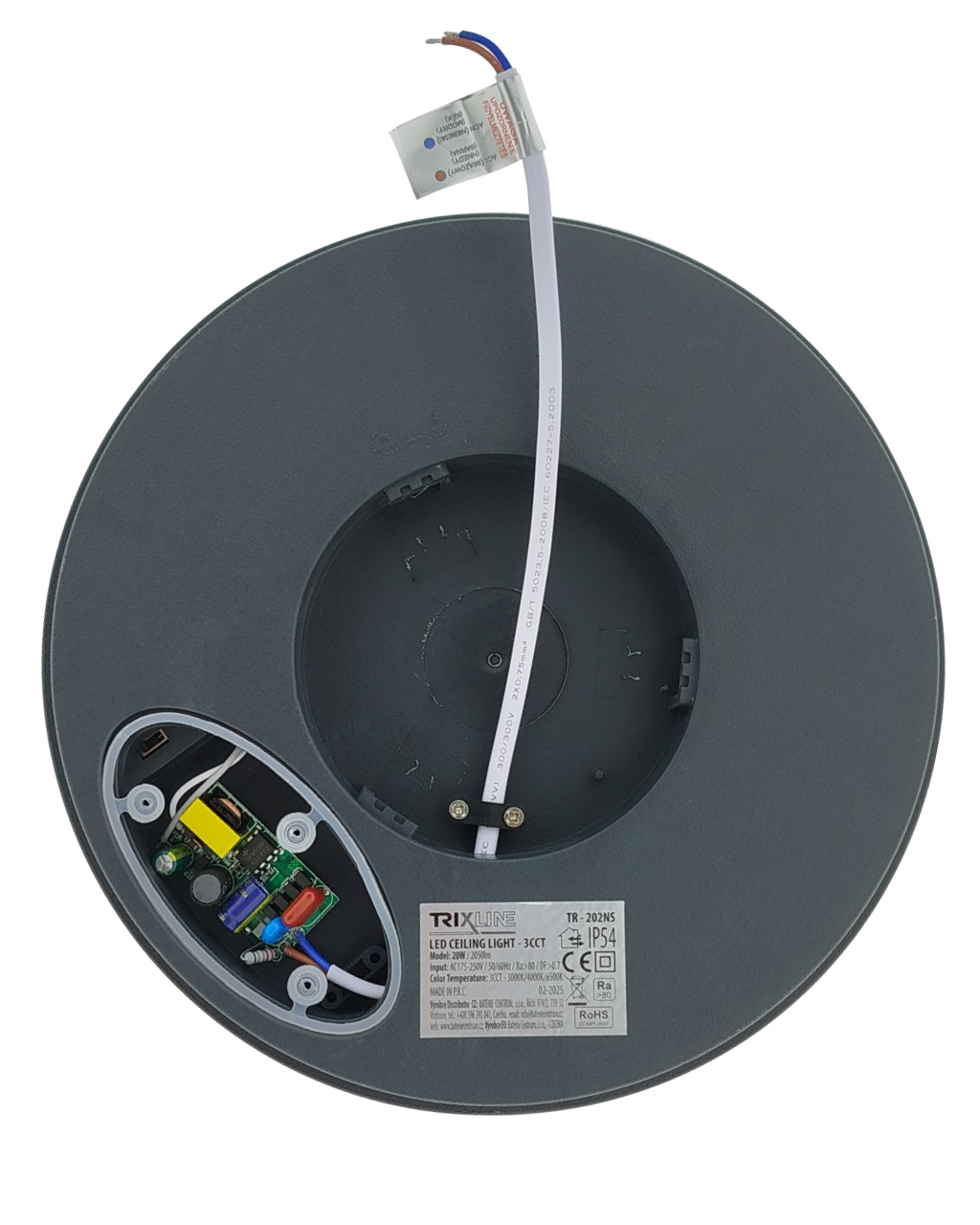 Moderní a výkonné LED CCT stropní svítidlo TR-202NS Trixline - o průměru 23cm a výšce 5,5cm poskytuje kvalitní a rovnoměrné osvětlení o síle 2050 lumenů. Perfektně se hodí pro obytné prostory, jako jsou obývací pokoje, ložnice, kuchyně, koupelny či chodby, stejně tak pro pracovny, kanceláře, technické místnosti, garáže, kryté venkovní prostory a pro komerční prostory. Nastavitelné CCT umožňuje volbu teplé, neutrální nebo studené bílé barvy světla (3000K/4000K/6500K) pro optimální přizpůsobení atmosféry každému prostoru. Příjemné a efektivní osvětlení, které splní vaše estetické i praktické požadavky.