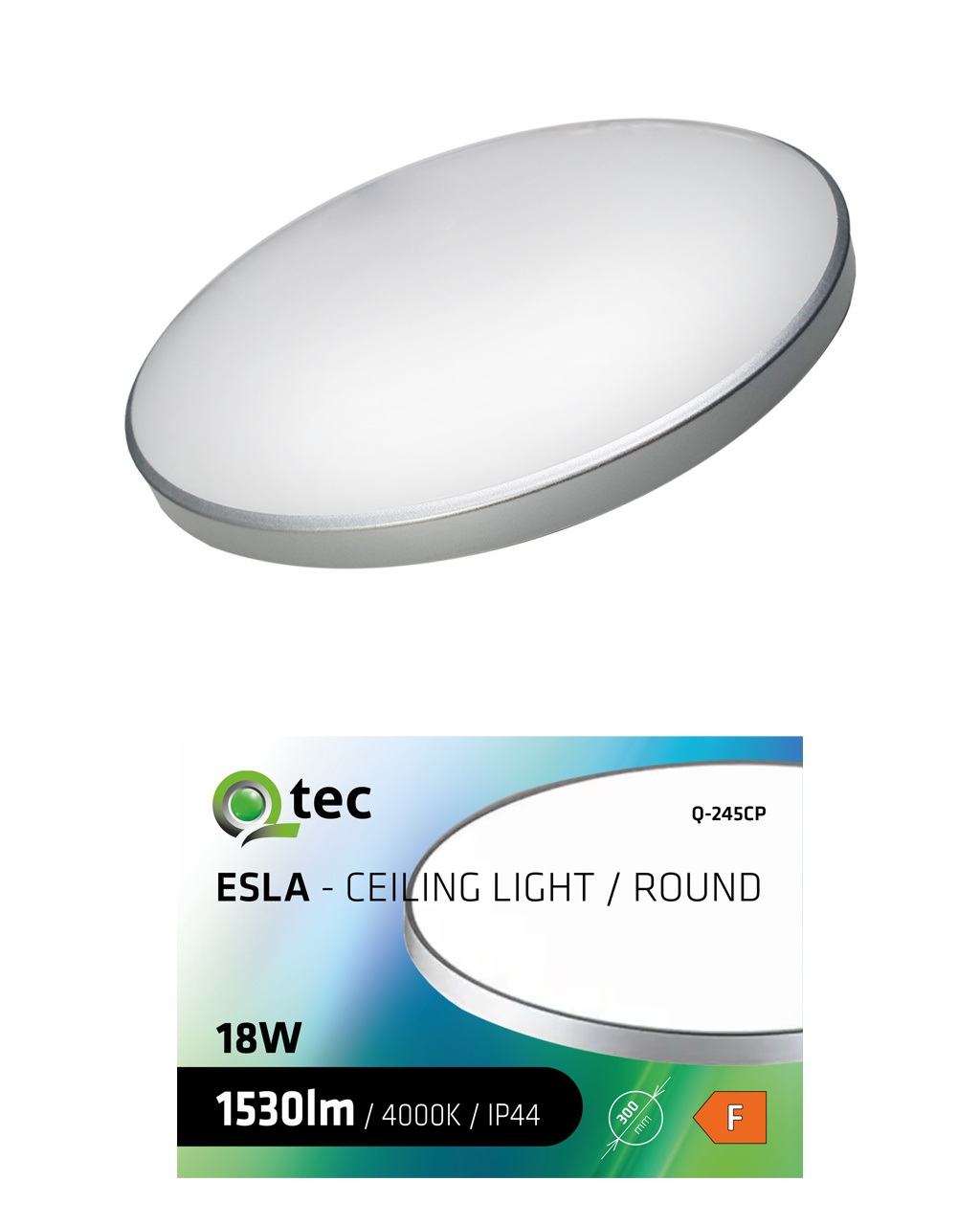 LED stropní svítidlo ESLA Q-245CP 18W 1530lm 4000K ø30cm/kruhové stříbrné QTEC