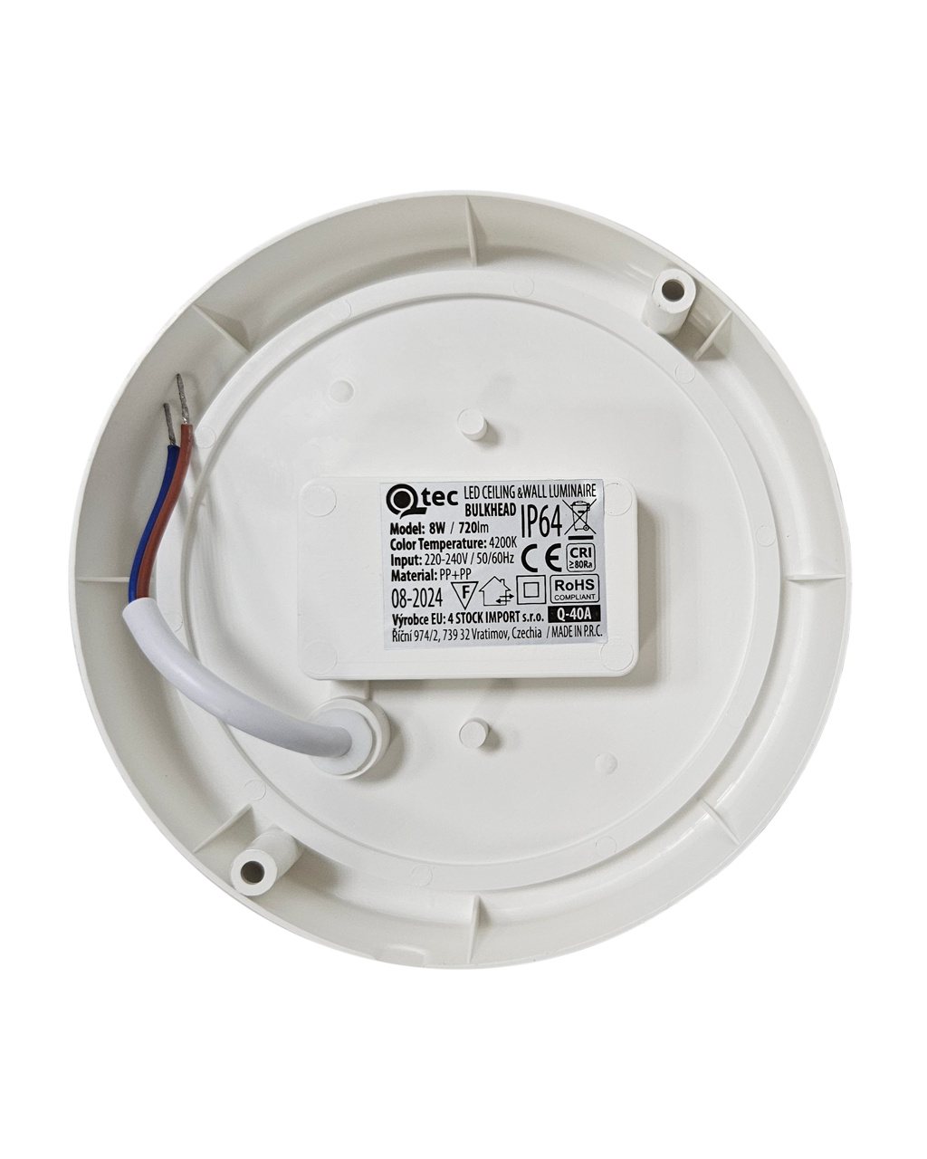LED stropní svítidlo Q-40A Qtec s výkonem 8W zajišťuje nízkou spotřebu energie při zachování vysoké svítivosti, přičemž jeho světelný tok 720lm poskytuje dostatečné osvětlení pro menší a středně velké místnosti. Neutrální bílá barva světla 4200K je vhodná pro pracovní prostory i domácí použití. Index podání barev (CRI) ≥80 zaručuje přirozené a věrné podání barev. Díky úhlu vyzařování 180° je světlo rovnoměrně rozptýleno bez oslnění a dlouhá životnost 25 000 hodin přispívá k dlouhodobému a spolehlivému provozu. Svítidlo s krytím IP64 nabízí vysokou odolnost vůči prachu a stříkající vodě, díky čemuž je vhodné pro venkovní i vnitřní použití. Svítidlo je ideální pro koupelny, toalety, chodby, garáže, venkovní přístřešky nebo technické místnosti, kde je vyžadována zvýšená ochrana proti vlhkosti a prachu.