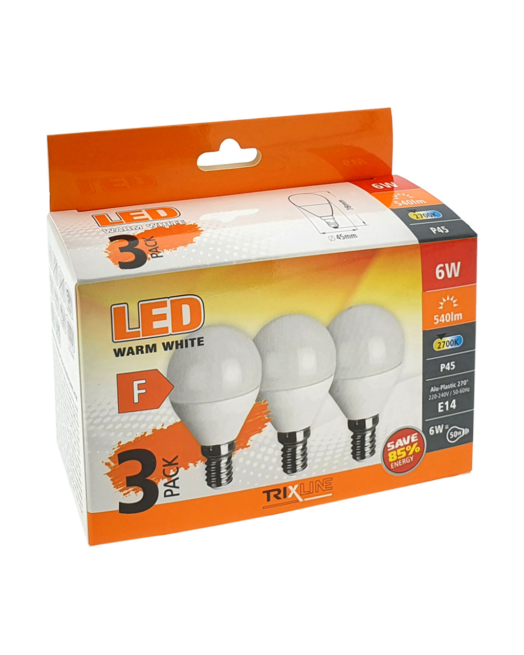 LED žárovka Trixline 6W P45 E14 teplá bílá 3 PACK