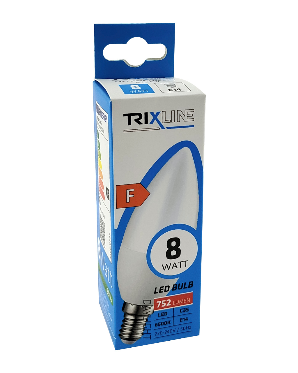 LED ŽÁROVKA TRIXLINE je úsporná LED žárovka s paticí E14, šetrná k životnímu prostředí, neobsahuje totiž žádnou rtuť ani olovo, navíc se dobře osvědčuje i při extrémně nízkých i vysokých teplotách, kdy s vláknovými žárovkami bývají problémy. Její životnost dosahuje až 30 000 hodin. Díky svému výkonu 8W výborně poslouží jako náhrada za klasickou 62W žárovku. LED žárovka se po zapnutí okamžitě rozsvítí bez jakékoliv prodlevy a vyzařuje studené bílé světlo 6500K.