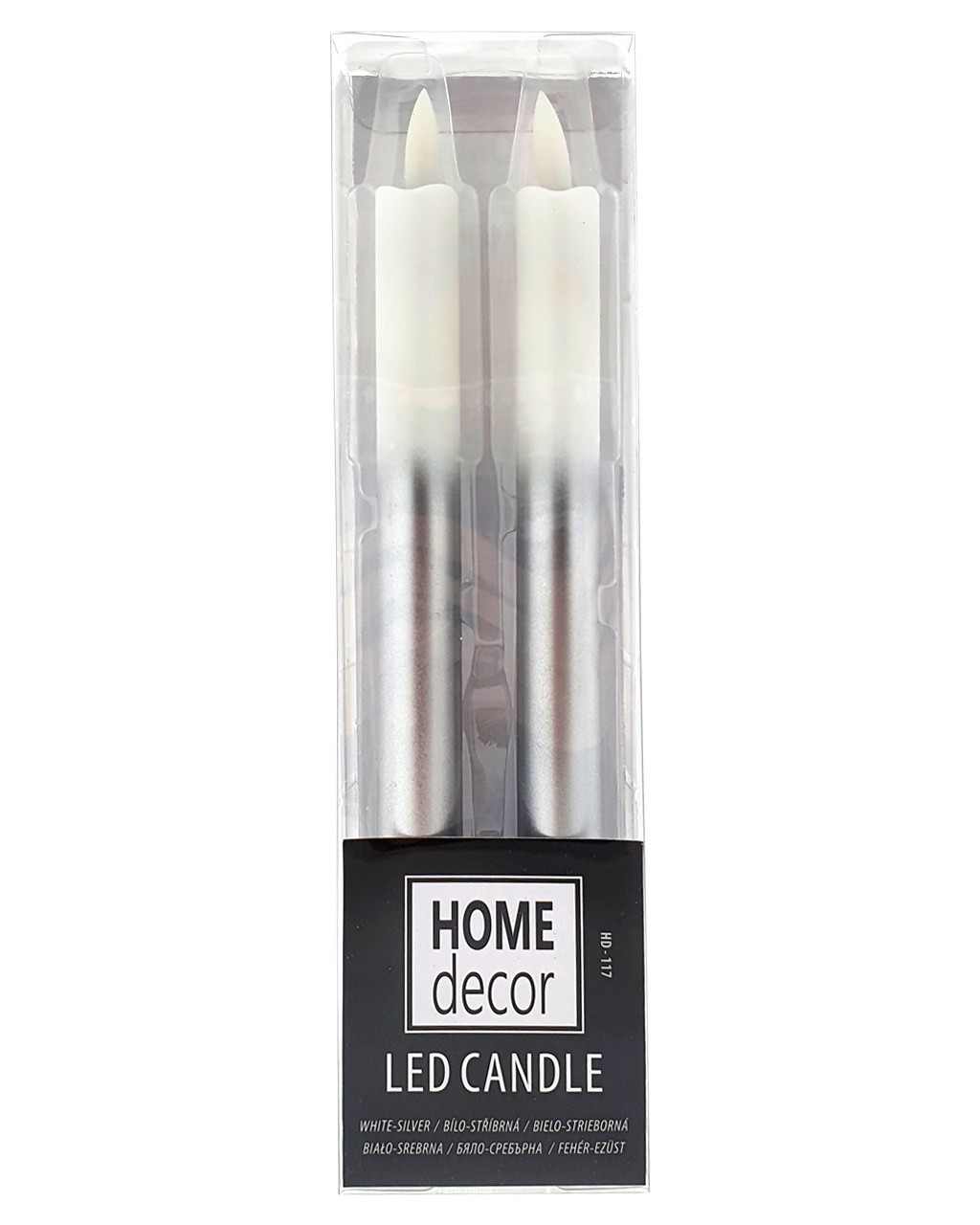 Długie świece LED - biało-srebrne, 2 sztuki HOME DECOR HD-117