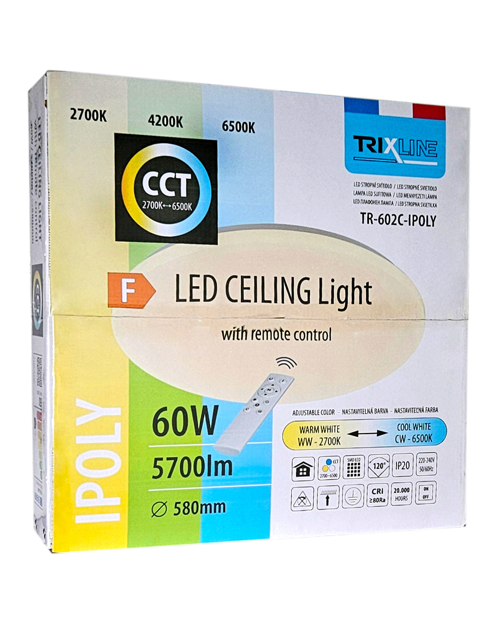 LED sufitowa lampa TR-602C - IPOLY 60W 5700lm ø58cm CCT + pilot Trixline