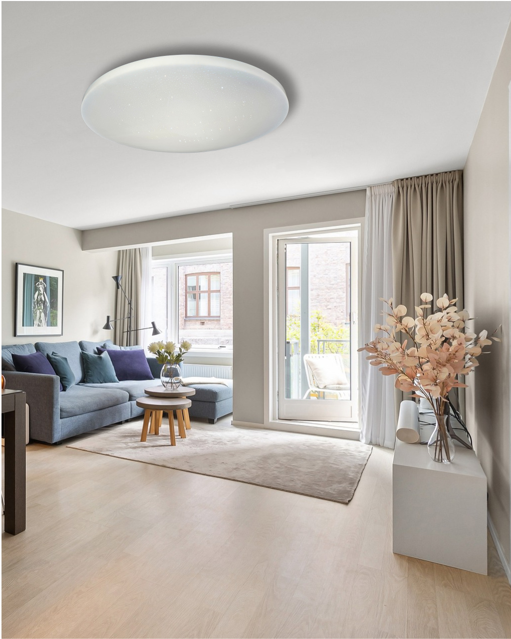 LED sufitowa lampa TR-603C - IPOLY Trixline w białym kolorze z efektem połysku jest przeznaczona do wnętrz takich jak salony, sypialnie, hale, biura, korytarze i podobne miejsca. Za pomocą dołączonego pilota możesz przełączać się między trzema temperaturami barwowymi w zakresie od 2700K do 6500K, które można ściemniać według potrzeb, aby stworzyć przyjemną atmosferę. Przy maksymalnym przyciemnieniu zużycie spada do zaledwie 14W z pierwotnych 80W, co gwarantuje oszczędność energii.Inną opcją na pilocie jest tryb nocny oraz funkcja 30 sekund, po upływie których lampa LED wyłączy się automatycznie. Po wyłączeniu lampa zapamiętuje ostatni ustawiony tryb, co zapewnia wygodne i intuicyjne użytkowanie.