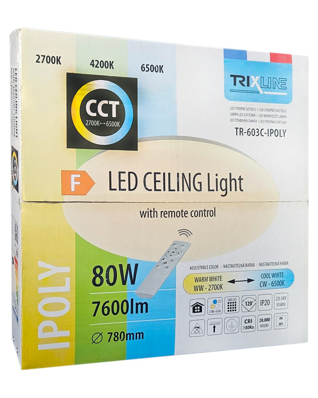 LED sufitowa lampa TR-603C - IPOLY 80W 7600lm ø78cm CCT + pilot Trixline