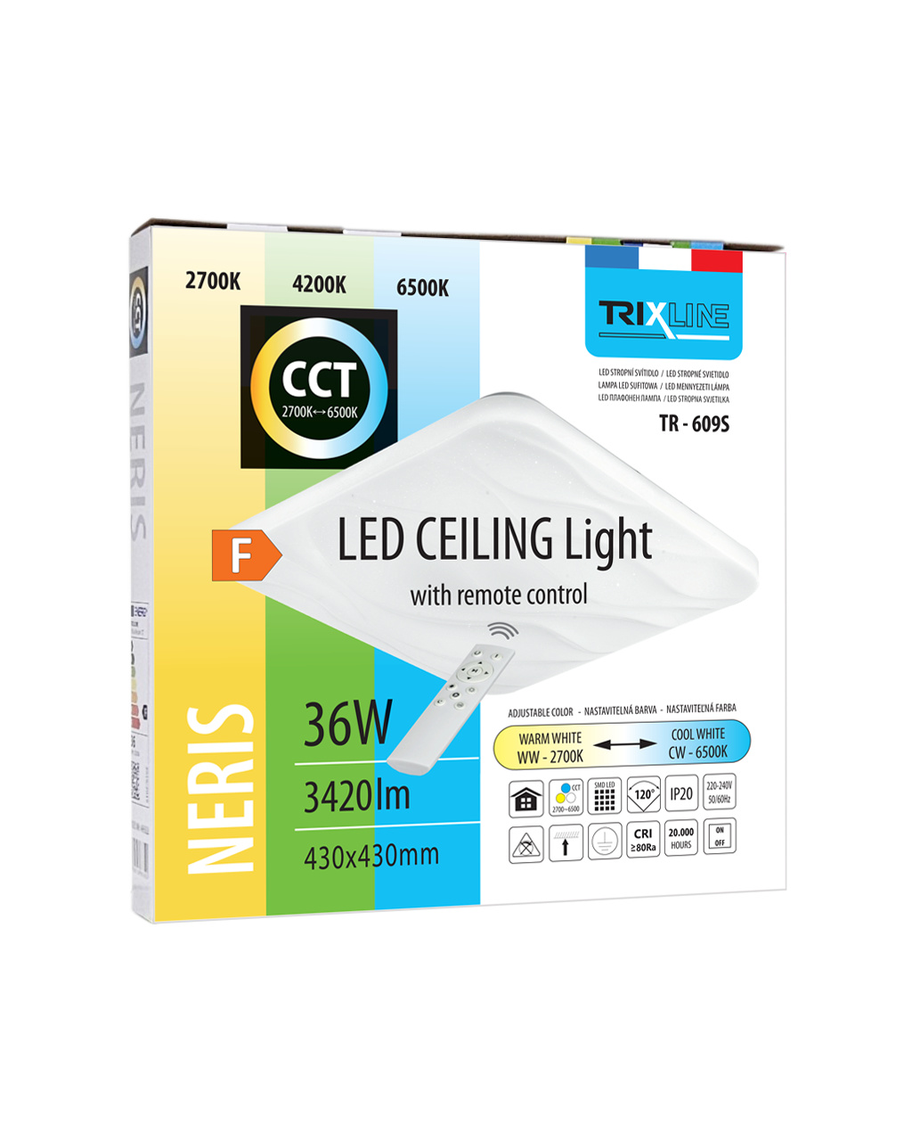 LED sufitowa lampa TR-609S - NERIS 36W 3420lm 43x43cm CCT + pilot Trixline