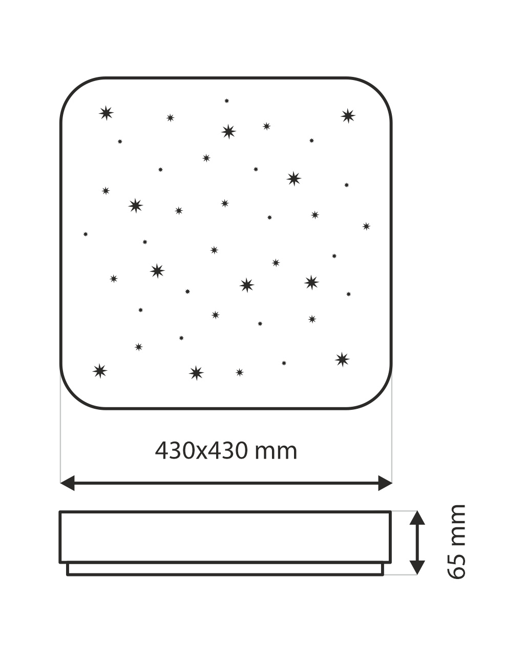 Zewnętrzny wymiar światła: 430x430x65mm