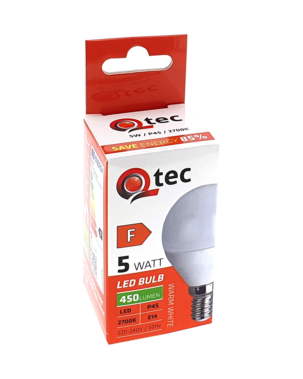 LED ŻARÓWKA Q tec to oszczędna żarówka LED z gwintem E14, przyjazna dla środowiska, ponieważ nie zawiera rtęci ani ołowiu, ponadto sprawdza się dobrze nawet w ekstremalnie niskich i wysokich temperaturach, gdzie tradycyjne żarówki często zawodzą.Jej żywotność sięga aż 30 000 godzin.Żarówka LED zapala się natychmiast po włączeniu bez żadnego opóźnienia i emituje przyjemne ciepłe białe światło 2700K.