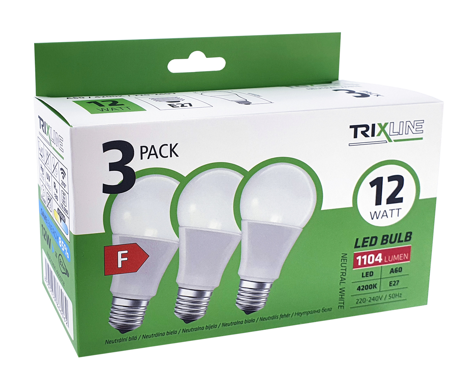 Żarówka LED Trixline 12W A60 E27 neutralna biała 3 PACK