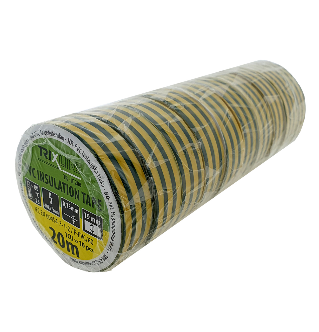 Taśma izolacyjna PVC TR-IT 206 20m, 0,13mm zielono-żółta TRIXLINE