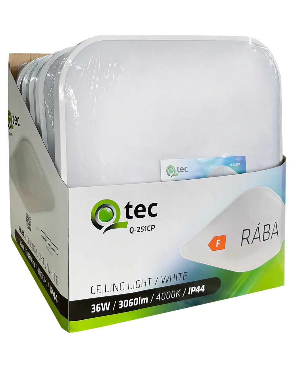 Bezpečnostní informace (PDF)Q-251CP Lampa sufitowa LED RÁBA 36W 3060lm 4000K kwadratowa biała QTEC