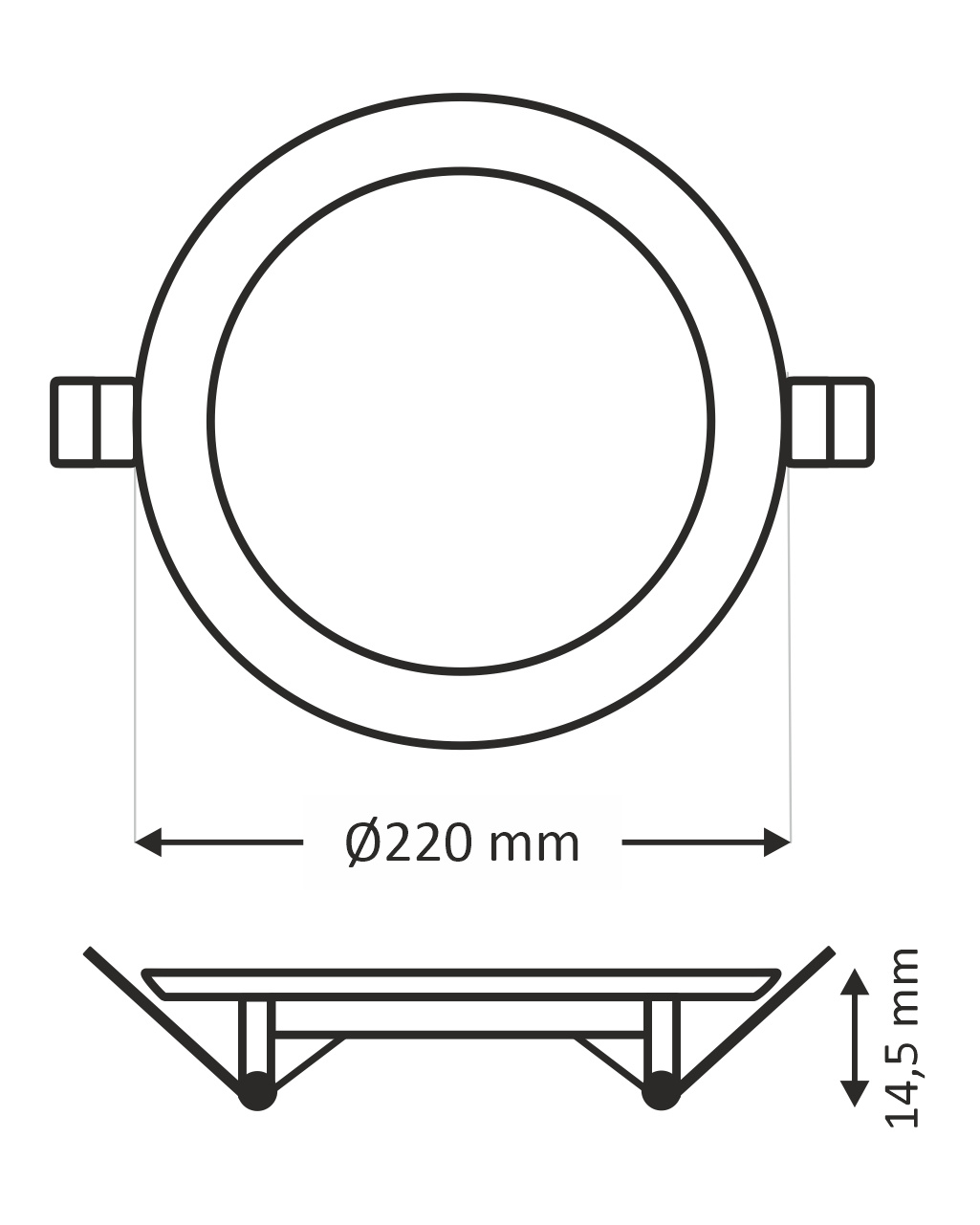 Vnější rozměr světla: ø220x14,5mm / Montážní otvor: ø205mm