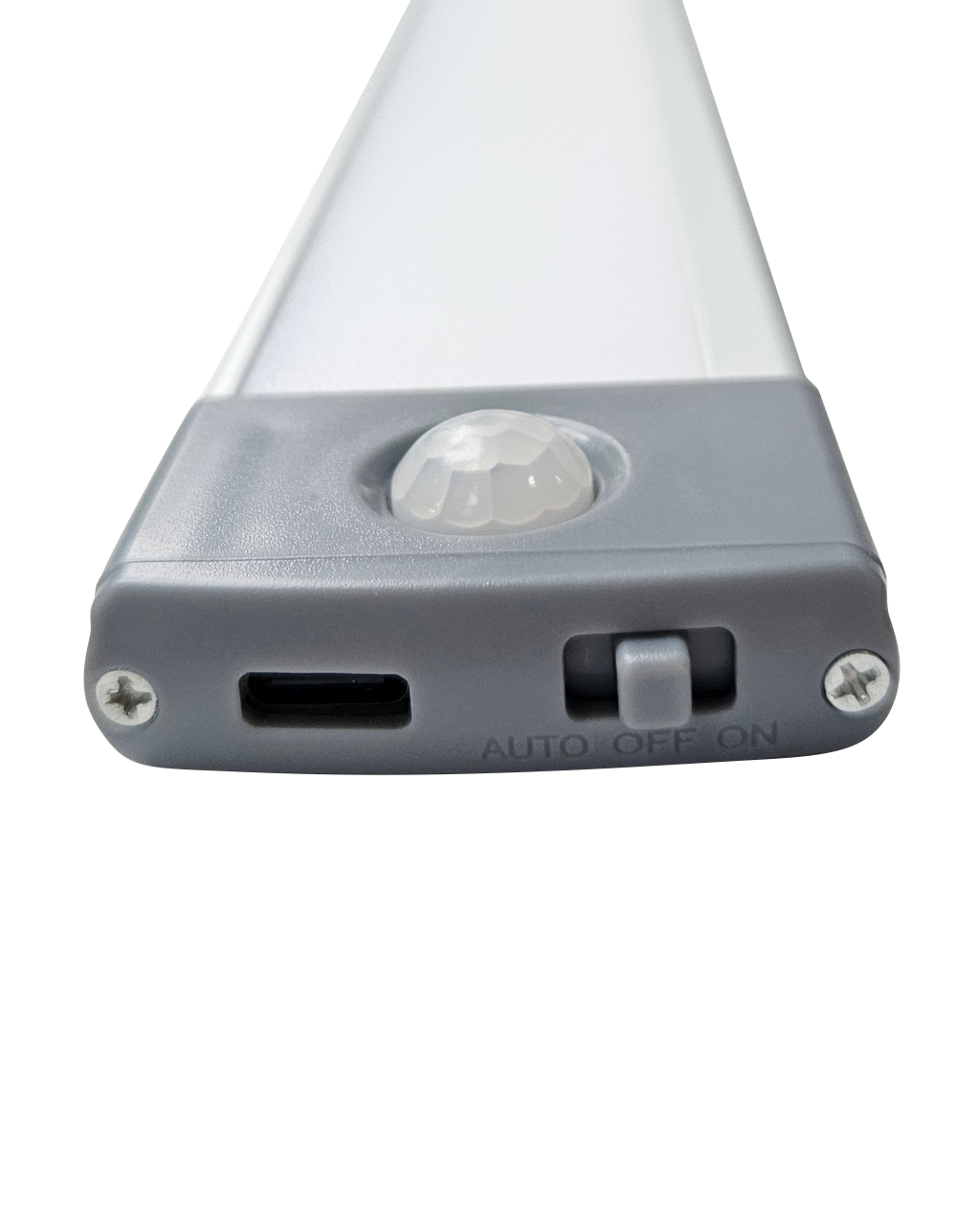 Praktické a energeticky úsporné nabíjecí LED svítidlo se senzorem pohybu Q-325W značky QTEC je ideální volbou pro osvětlení skříní, chodeb, schodišť, kuchyňských linek, rámu postele, polic, nebo dalších prostor, kde potřebujete efektivní a automatické světlo. Díky integrované nabíjecí baterii 800mAh se snadno instaluje bez nutnosti připojení k elektrické síti. Světlo nabijete USB-C kabelem, který je součástí balení. Pohybový senzor s detekční vzdáleností 3m a úhlem záběru 120° aktivuje světlo automaticky na 20s při zaznamenání pohybu. Svítidlo nabízí 3 režimy – OFF, AUTO a ON – umožňující buď trvalé svícení, nebo automatickou aktivaci podle potřeby. Instalace je jednoduchá pomoci magnetického uchycení, které umožňuje snadné připevnění bez nutnosti vrtání. Elegantní provedení v kombinaci hliníku a plastu ve stříbrné barvě skvěle zapadne do jakéhokoliv interiéru. Navíc vysoká kvalita podání barev (CRI ≥ 80) zajišťuje jasné a přirozené osvětlení.