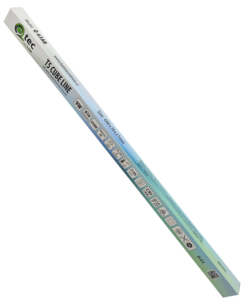 Bezpečnostní informace (PDF)Q-63AB 9W / 810lm / 4200K T5 podlinkové světlo s vypínačem a konektorem - černé QTEC 60cm