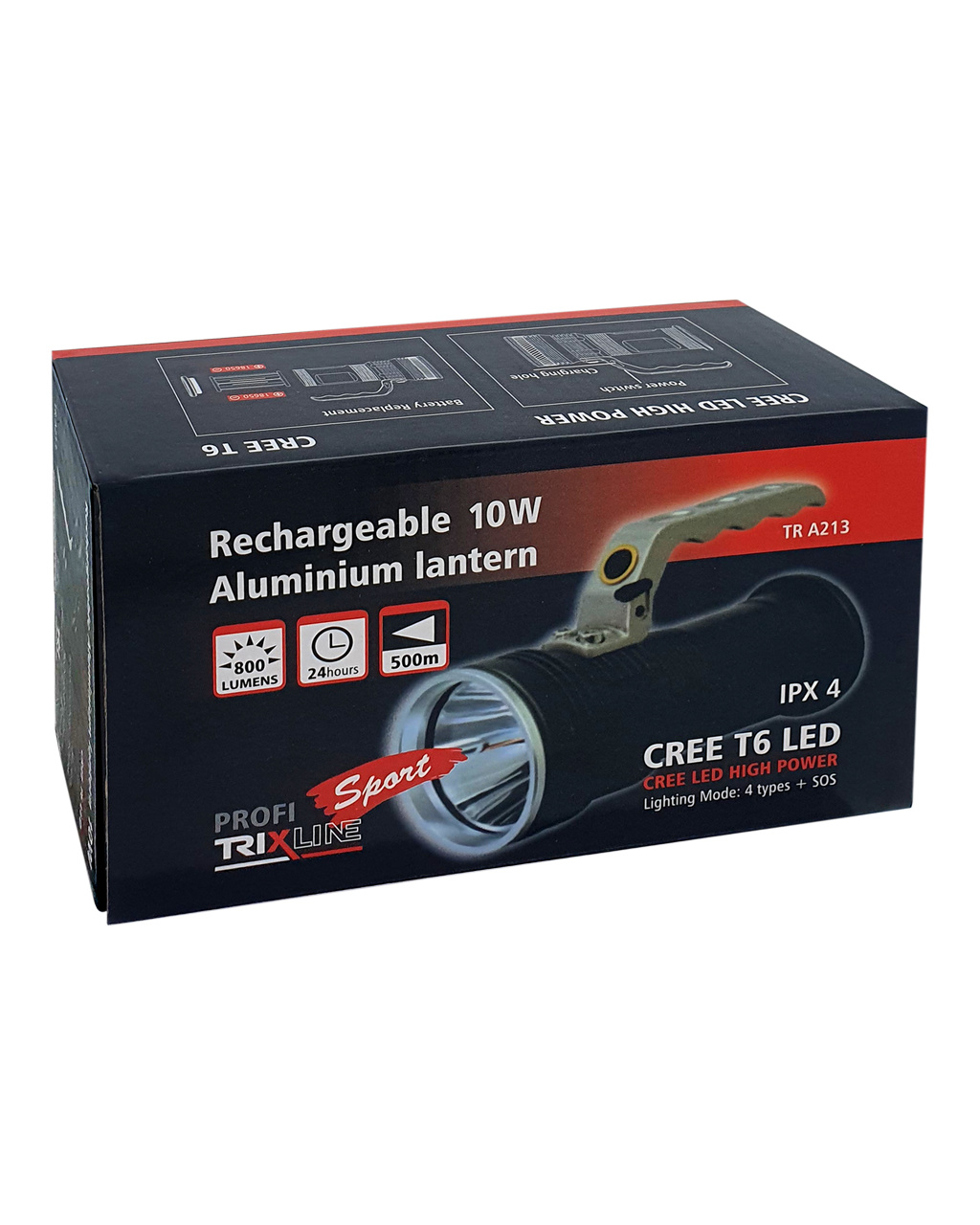 Ruční nabíjecí svítilna Trixline A213 LED je příruční světlo vysokého výkonu. Tělo svítilny je z hliníku, čímž zajišťuje nízkou hmotnost a vysokou odolnost. Po vybití stačí nabít přiloženou nabíječkou. Svítilna je opatřena pevnou rukojetí.