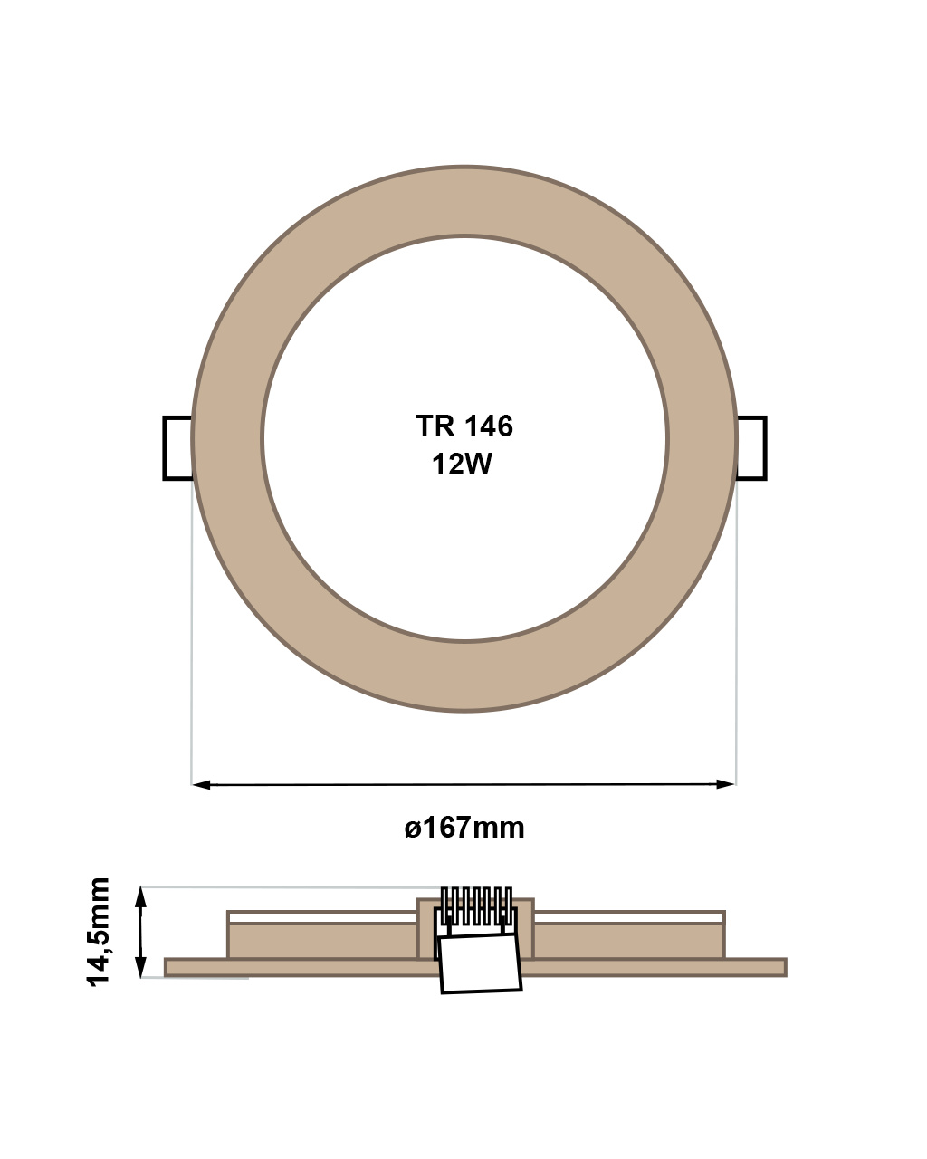 Bezpečnostní informace (PDF)TR-146 LED panel 12W 1008lm 4200K dekor dřevo - kruhový vestavný Trixline