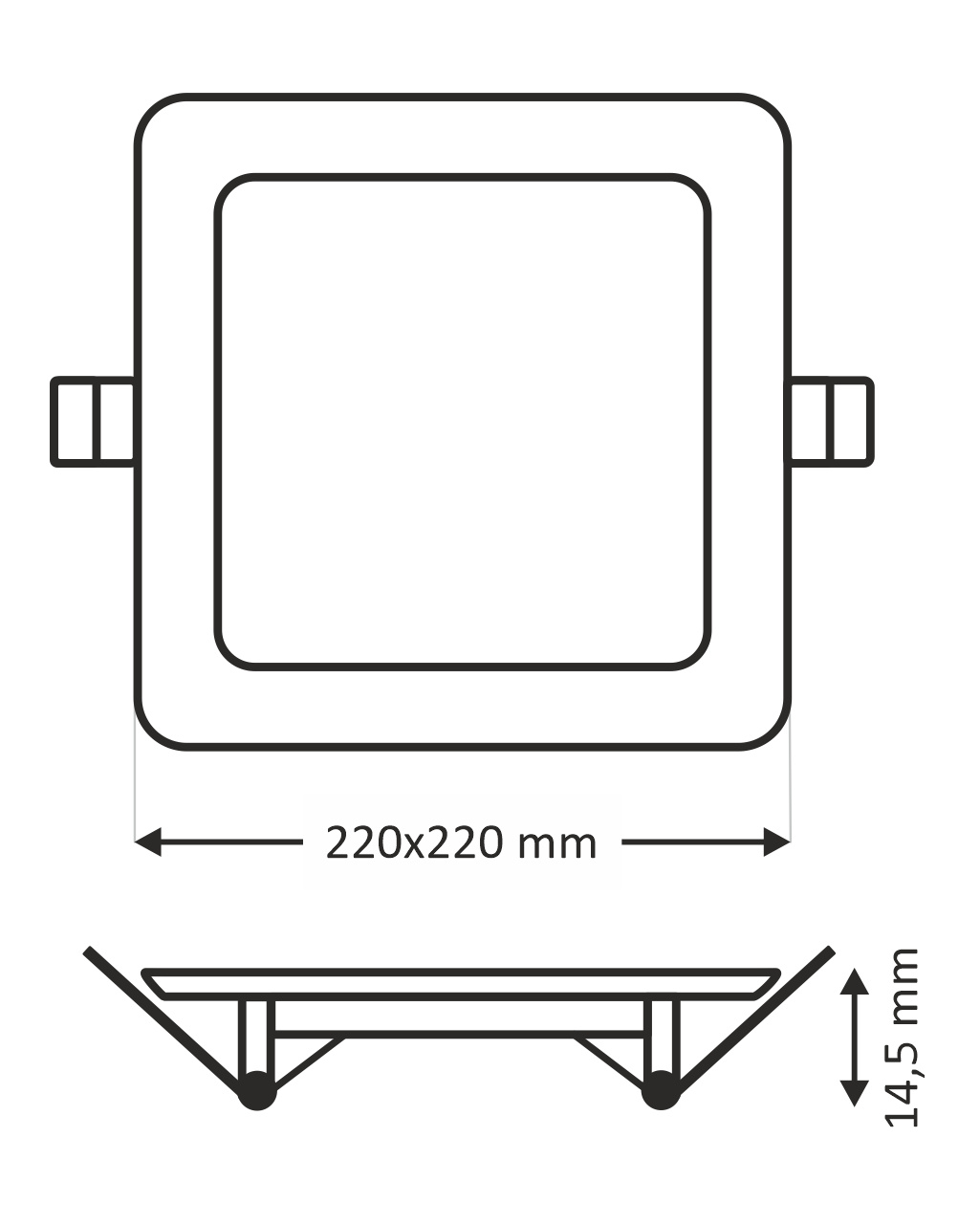 - Vnější rozměr světla: 220x220x14,5mm