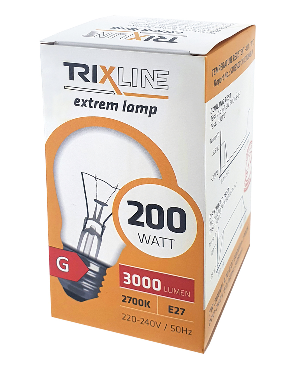 Bezpečnostní informace (PDF)Teplotně odolná žárovka Trixline 200W, A70, E27, 2700K