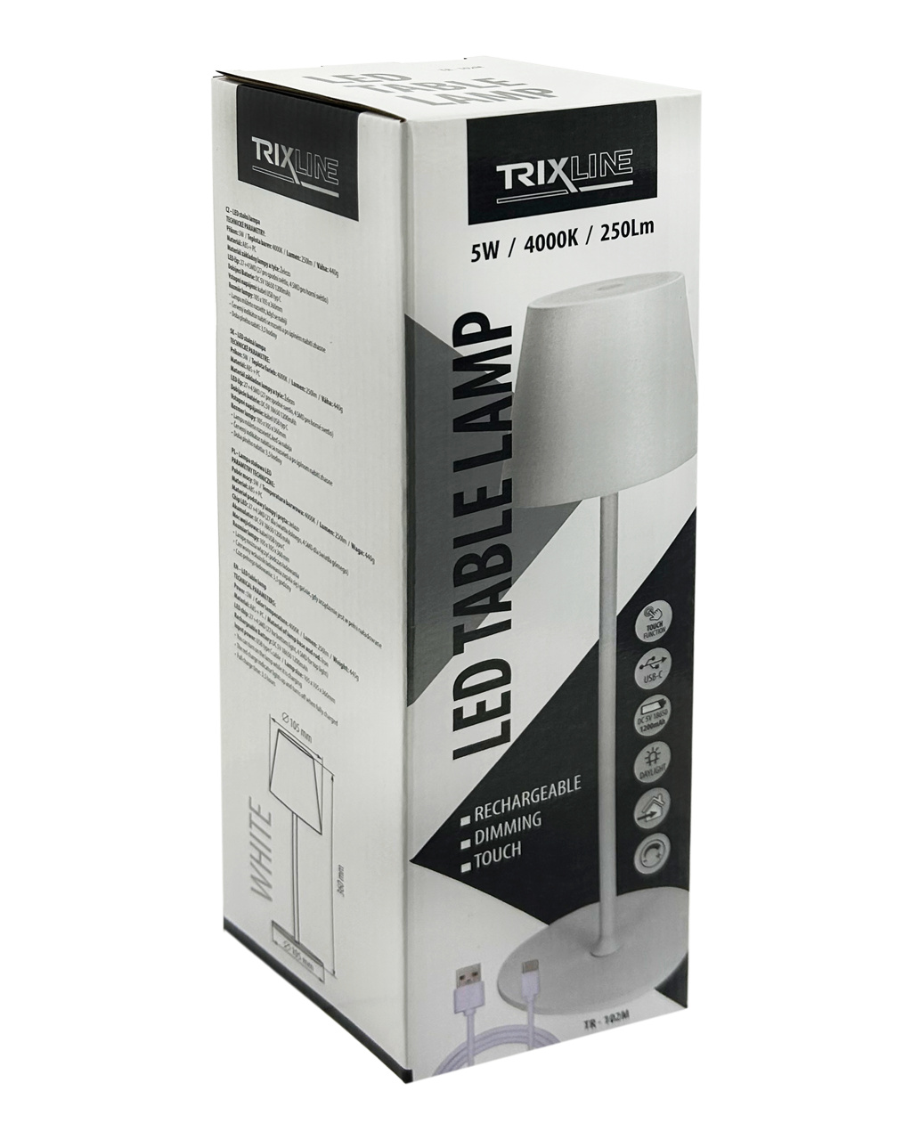 TR-102M LED stolní nabíjecí lampa - bílá Trixline