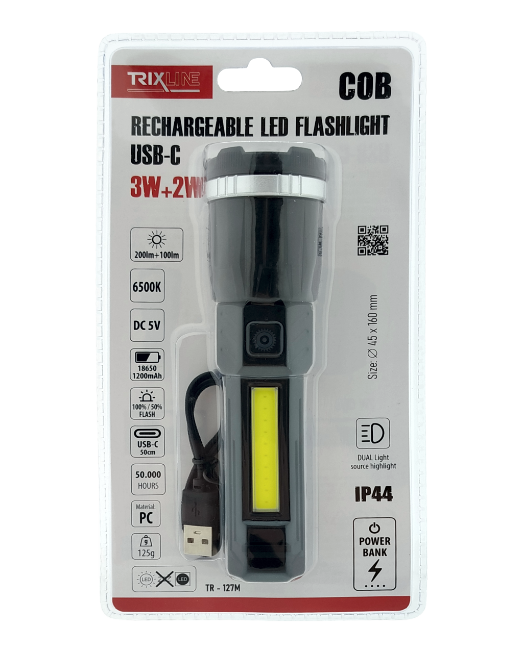 TR-127M COB LED Nabíjecí svítilna USB-C 3W + 2W