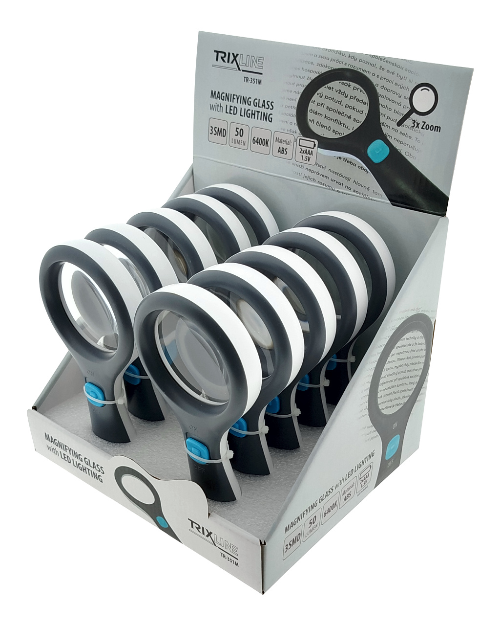 TR-351M Lupa s LED osvětlením 3 SMD 3x zoom 6400K Trixline